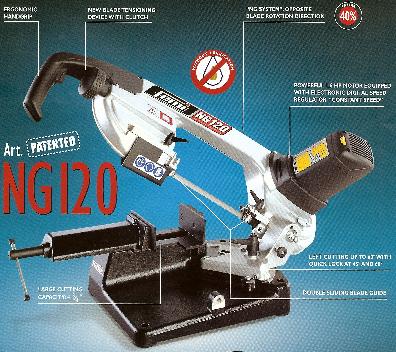 TECHNICAL FEATURES * Cuts without lubrication * Practical blade tendioning device * Adjustable left cutting angle from 0 to 45 Degree * Professional vise with prismatic guides * Powerful 850 HP single phase motor * Two speeds, electrically switched * Anti-reset safety function * Steady and sturdy pressed steel base * Ergonomic handgrip * Arm-blocking device for easy handling